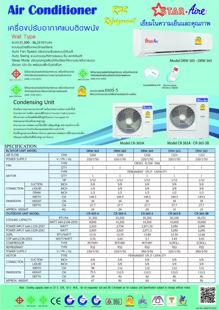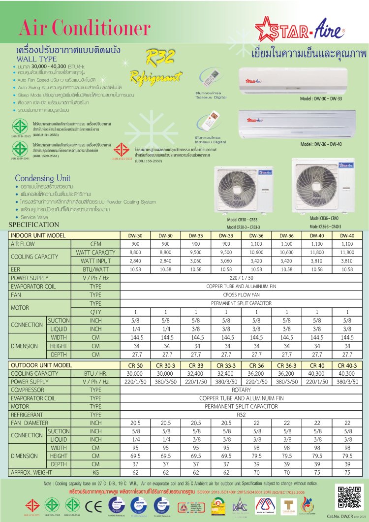 แอร์ติดผนังทุกรุ่น ขนาด 9,000-36,000BTU