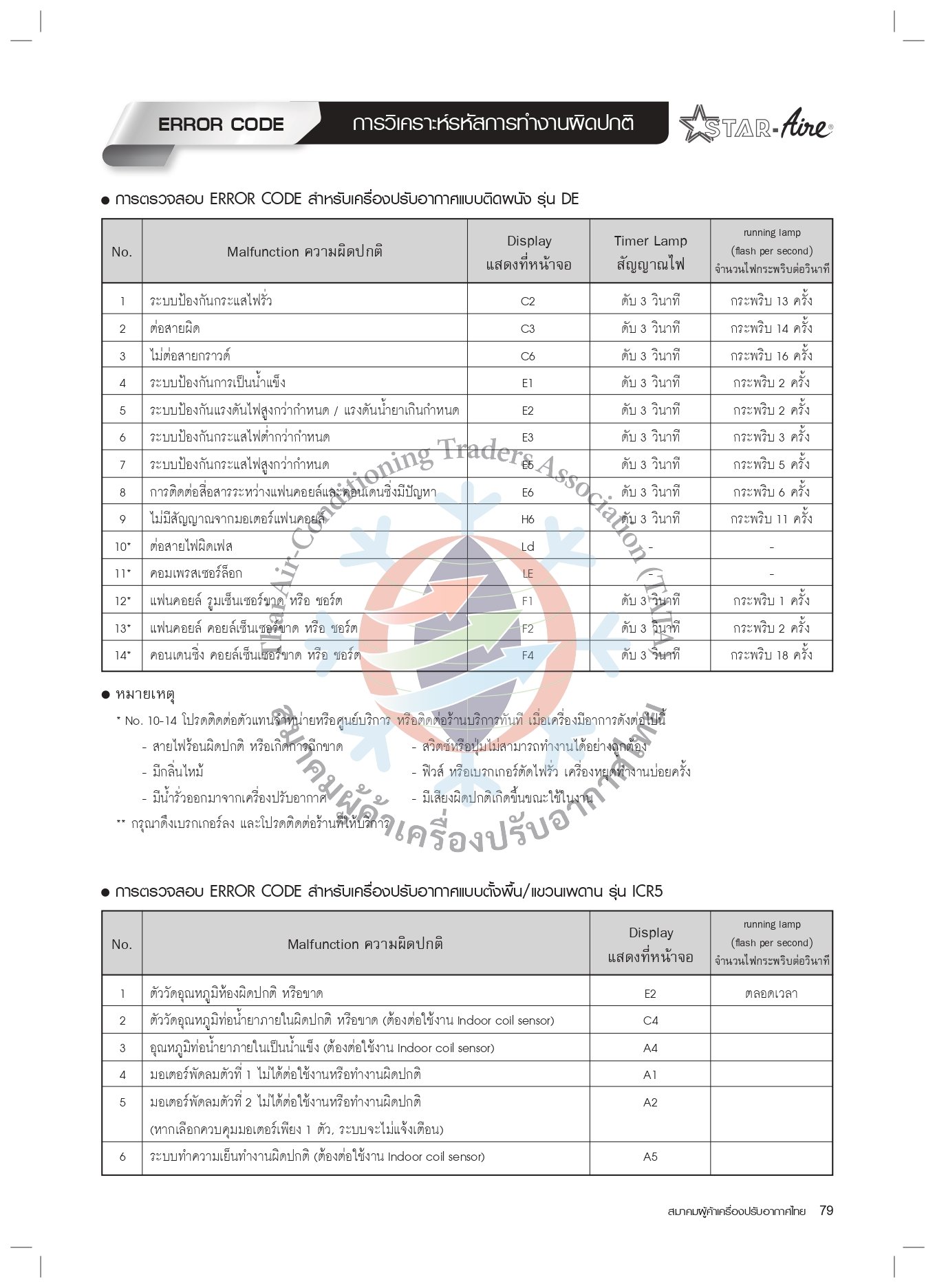 - การตรวจสอบ ERROR CODE สำหรับเครื่องปรับอากาศแบบตั้งพื้น/แขวนเพดาน รุ่น ICR5 (รูป2)