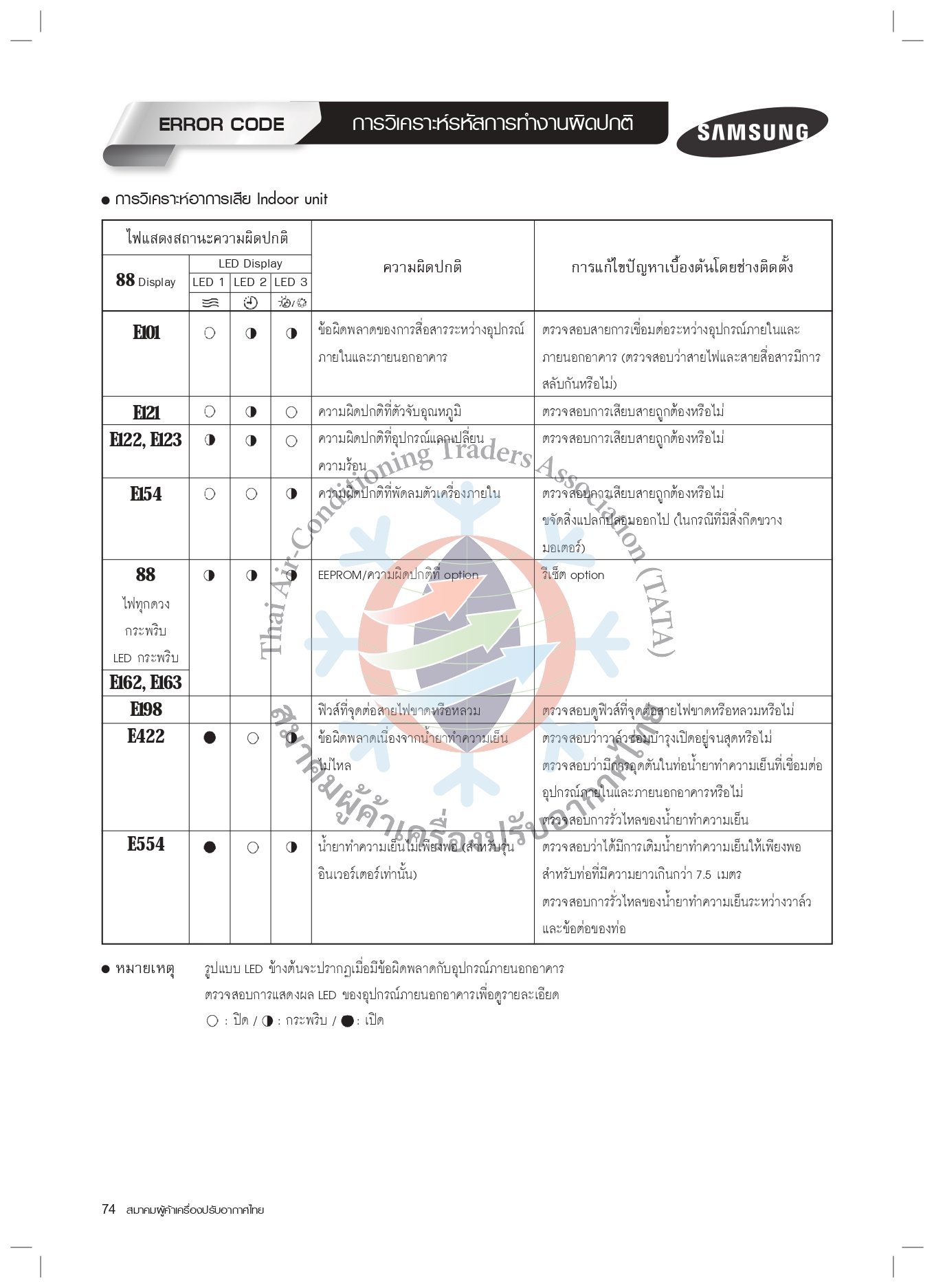 - การวิเคราะห์อาการเสีย Indoor Unit