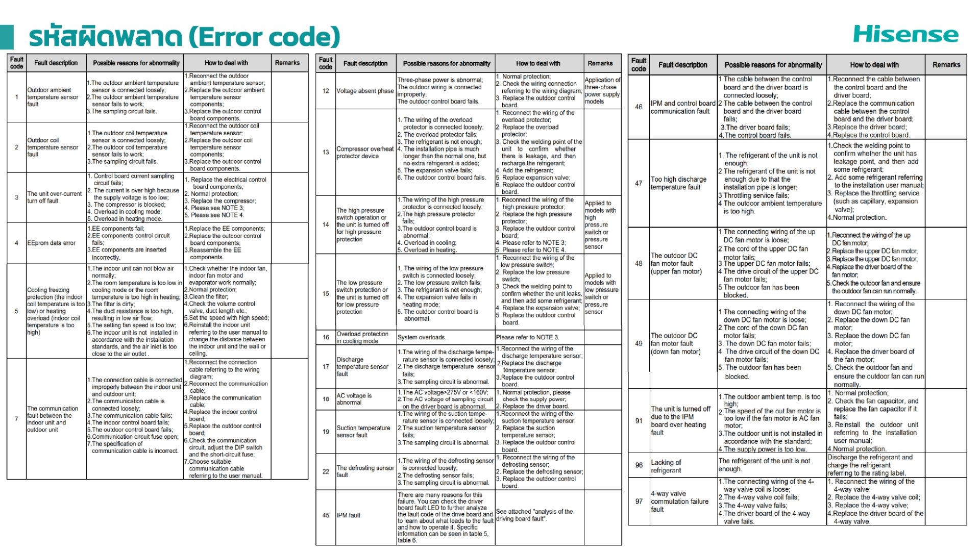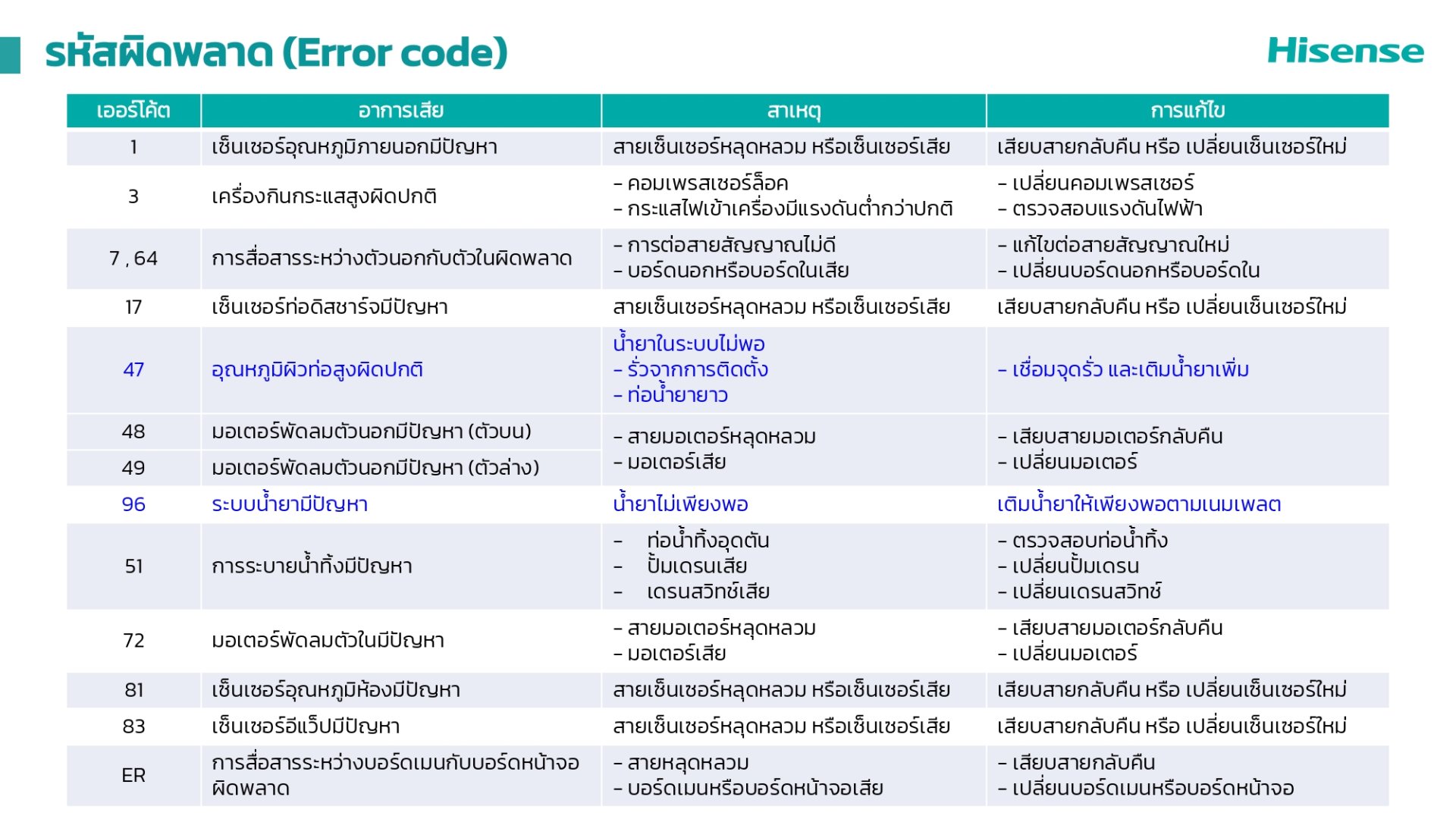 - ตาราง Error Code และ วิธีการแก้ไข
