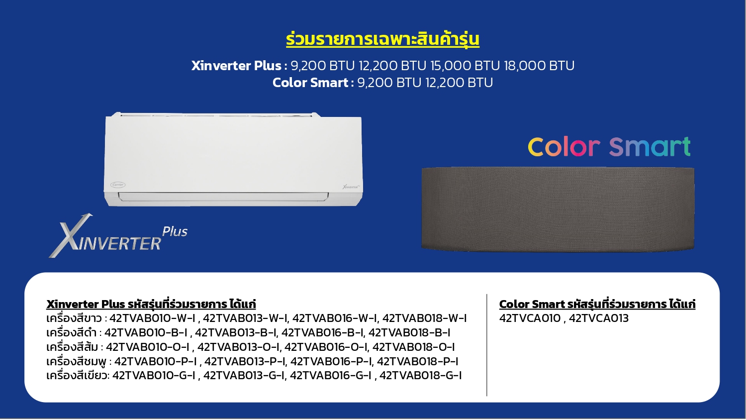 เพียงซื้อแอร์CARRIER รุ่นที่ร่วมรายการ วันนี้ - 31 พฤษภาคม 2566