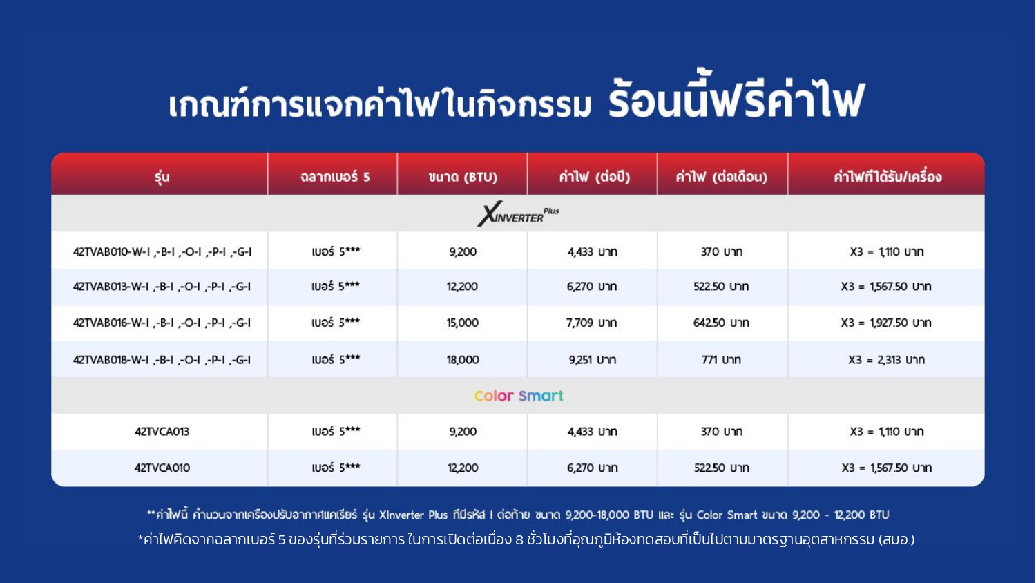 รับไปเลย ค่าไฟ ฟรี 3 เดือน สำหรับ แอร์ รุ่นเบอร์ 5 3 ดาว