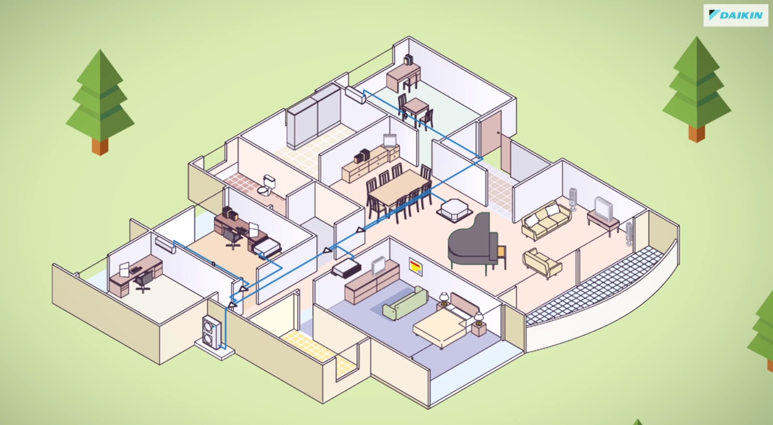 แอร์ VRV เป็นอีกหนึ่งทางเลือกในการติดตั้งเพื่อไม่ให้รบกวนดีไซน์ของอาคารหรือบ้าน เพราะตัวคอนเดนซิ่งหรือคอยล์ร้อนสามารถเชื่อมต่อแอร์ได้เป็นจำนวนมาก และจะถูกติดตั้ง ออกแบบไว้ในพื้นที่ที่เหมาะสม