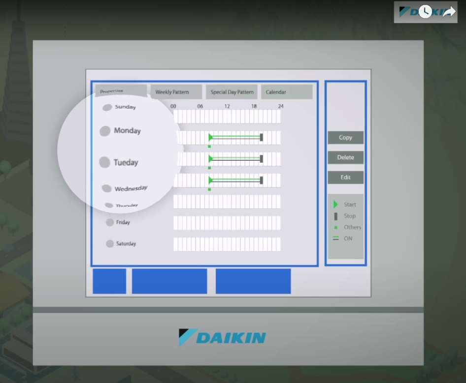 โดยแอร์ระบบ VRV ได้ผสานเทคโนโลยี VRT (Variable Refrigerant Temperature) ที่สามารถปรับ “อุณหภูมิของน้ำยา” ตามสภาวะอากาศ จึงช่วยประหยัดพลังงานยิ่งขึ้นพร้อมระบบควบคุมส่วนกลางอัจฉริยะ ITM (Intelligent Touch Manager) ที่ช่วยควบคุมและตรวจสอบการทำงานของไดกิ้น VRV ซึ่งถูกติดตั้งไปทั่วทั้งอาคาร ให้ผู้ใช้งานควบคุมการเปิด-ปิด เครื่องปรับอากาศได้ตามต้องการ กำหนดอุณหภูมิแต่ละห้อง ตั้งค่าการทำงานรายสัปดาห์ รวมถึงรายงานข้อมูลการใช้พลังงานได้อย่างแม่นยำอีกด้วย