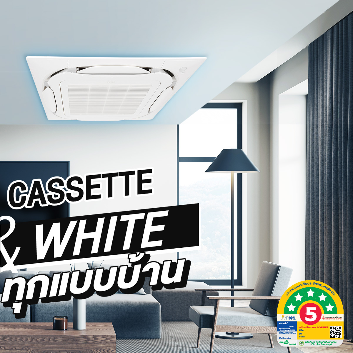 พร้อมทั้งประหยัดไฟขั้นสุดด้วยระบบ Inverter ประหยัดไฟเบอร์ 5 สูงสุด 5 ดาว