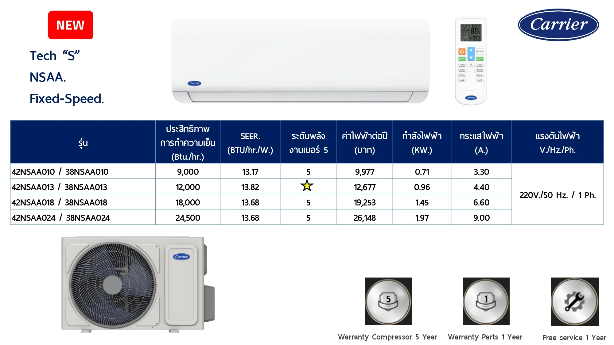 การรับประกัน อะไหล่ 1 ปี คอม 5 ปี ฟรีค่าแรง 1 ปี