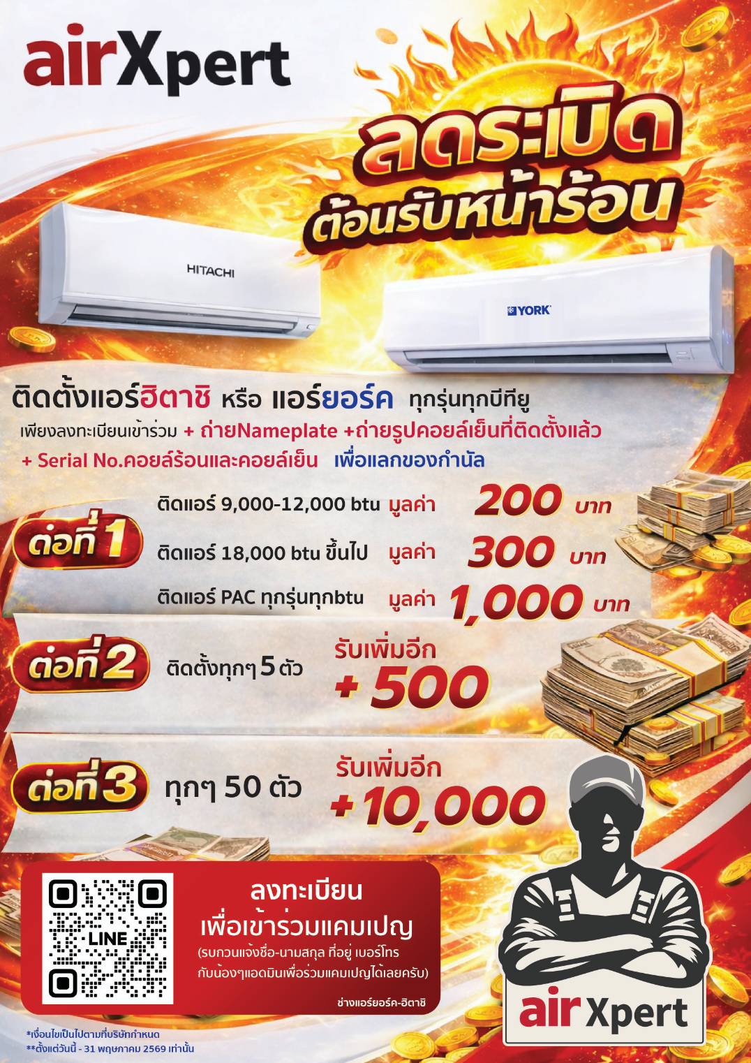 สำหรับผู้ติดตั้งแอร์ HITACHI / YORK 2569เริ่มวันนี้ - 31 พฤษภาคม 2569