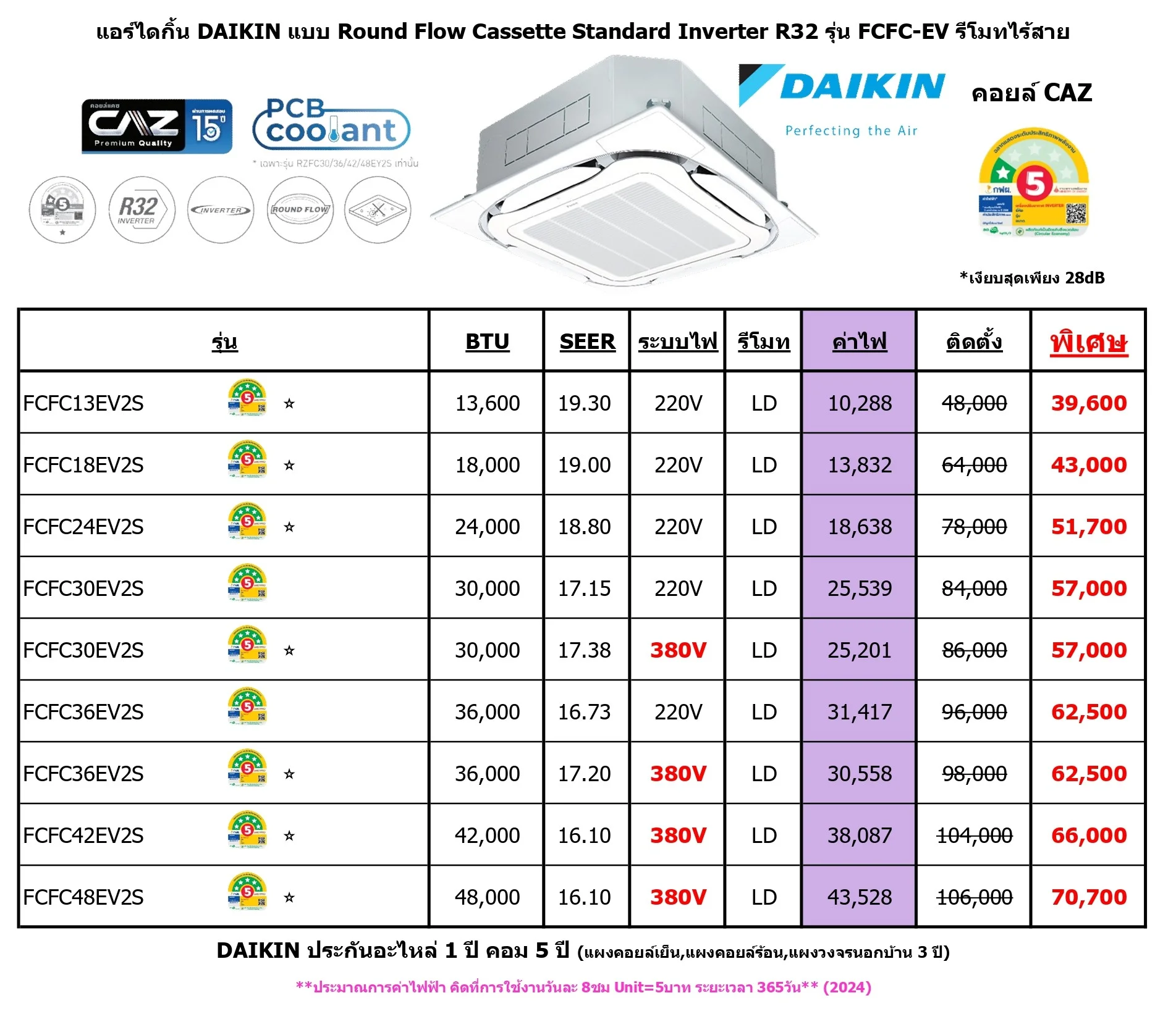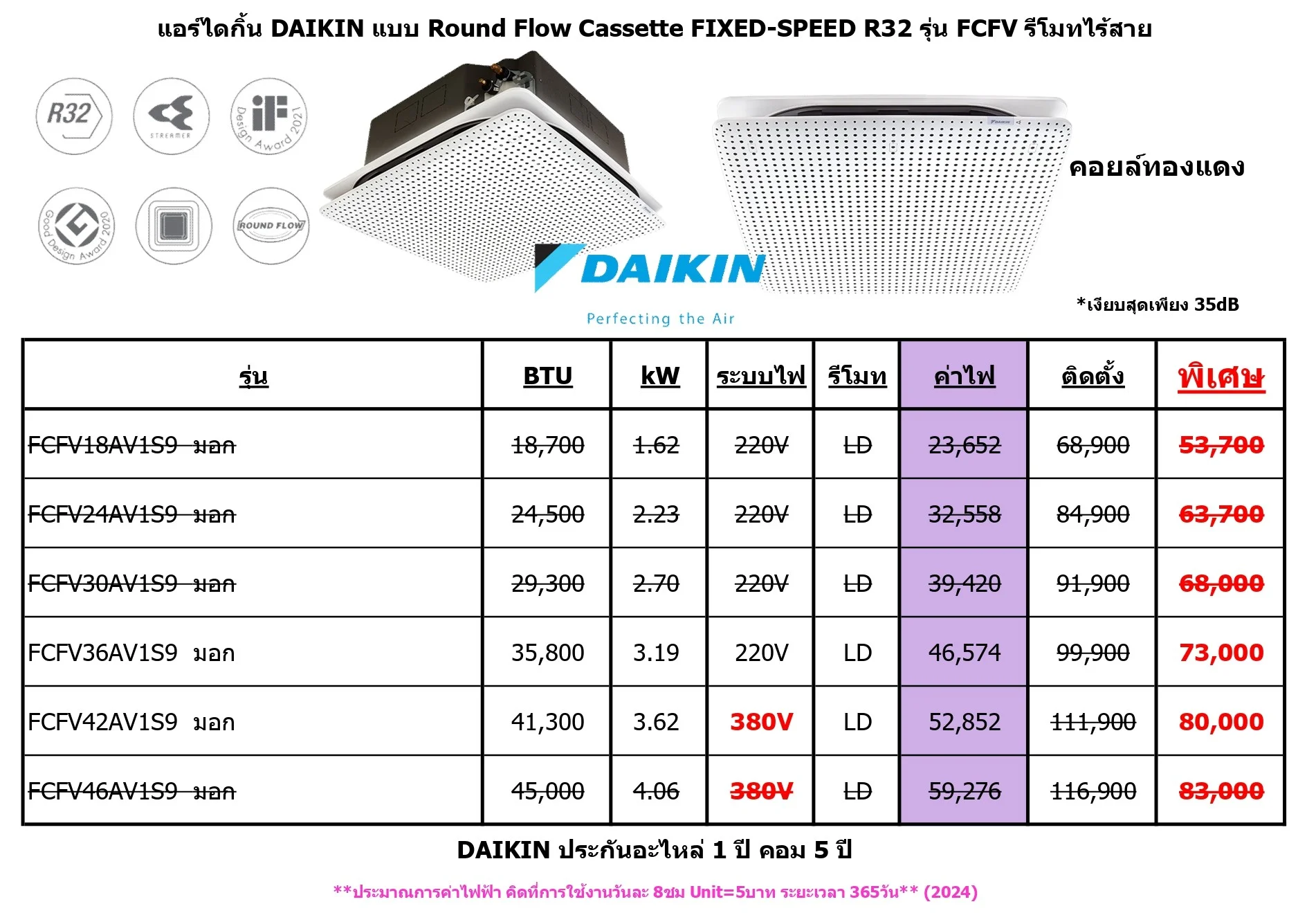 DAIKIN ประกันอะไหล่ 1 ปี คอม 5 ปี | ฟรีค่าแรง 1 ปี