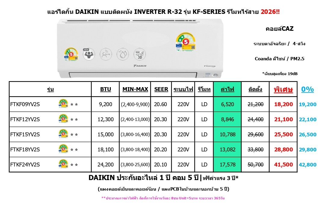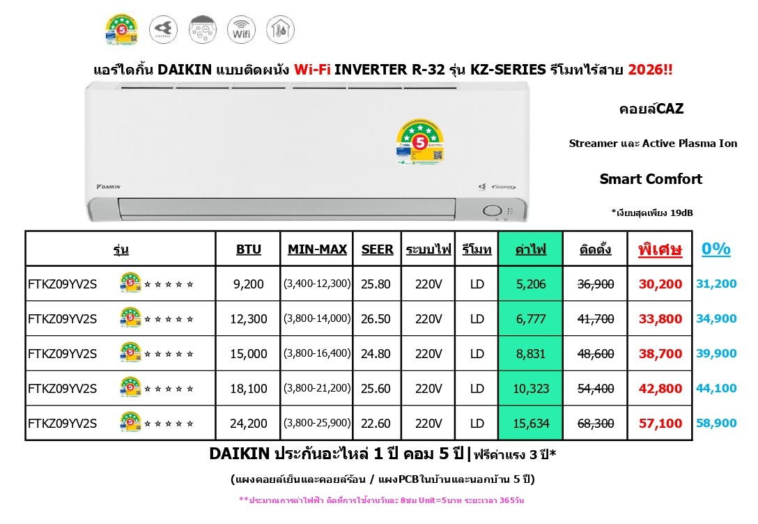 รุ่น MAX INVERTER STAR KZ Series FTKZ-YV2S R-32