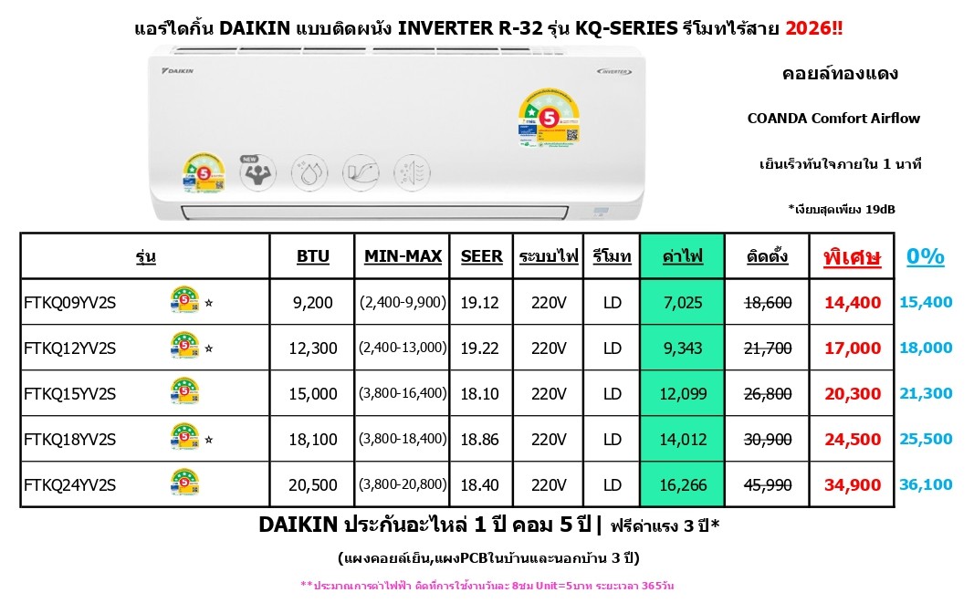รุ่น MAX INVERTER STAR KQ Series FTKQ-YV2S R-32