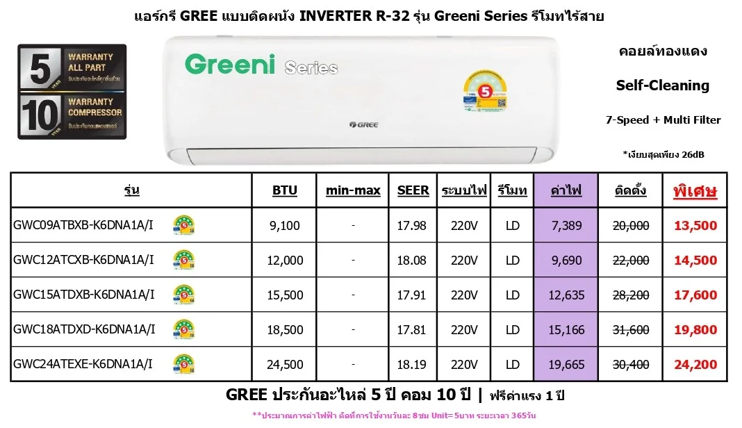 เครื่องปรับอากาศ กรี GREE แบบติดผนัง Wall Type
