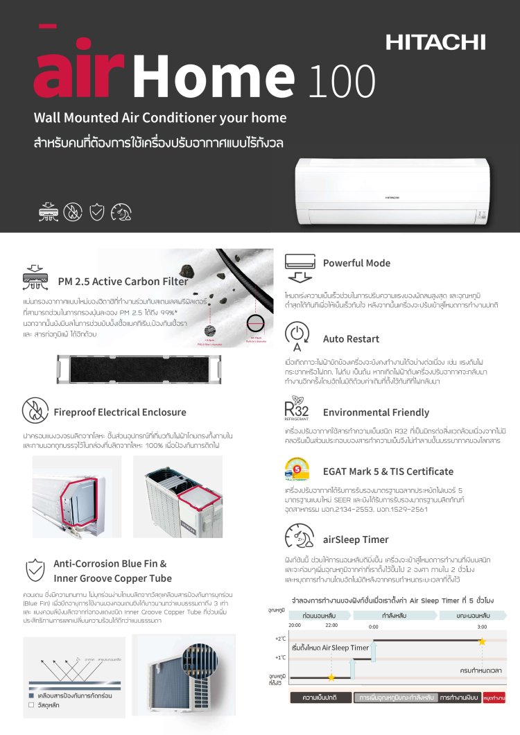 แอร์ฮิตาชิ HITACHI รุ่น FIXED-SPEED EJ ธรรมดา ติดผนัง รีโมทไร้สาย R-32 ระบบไฟ 220V