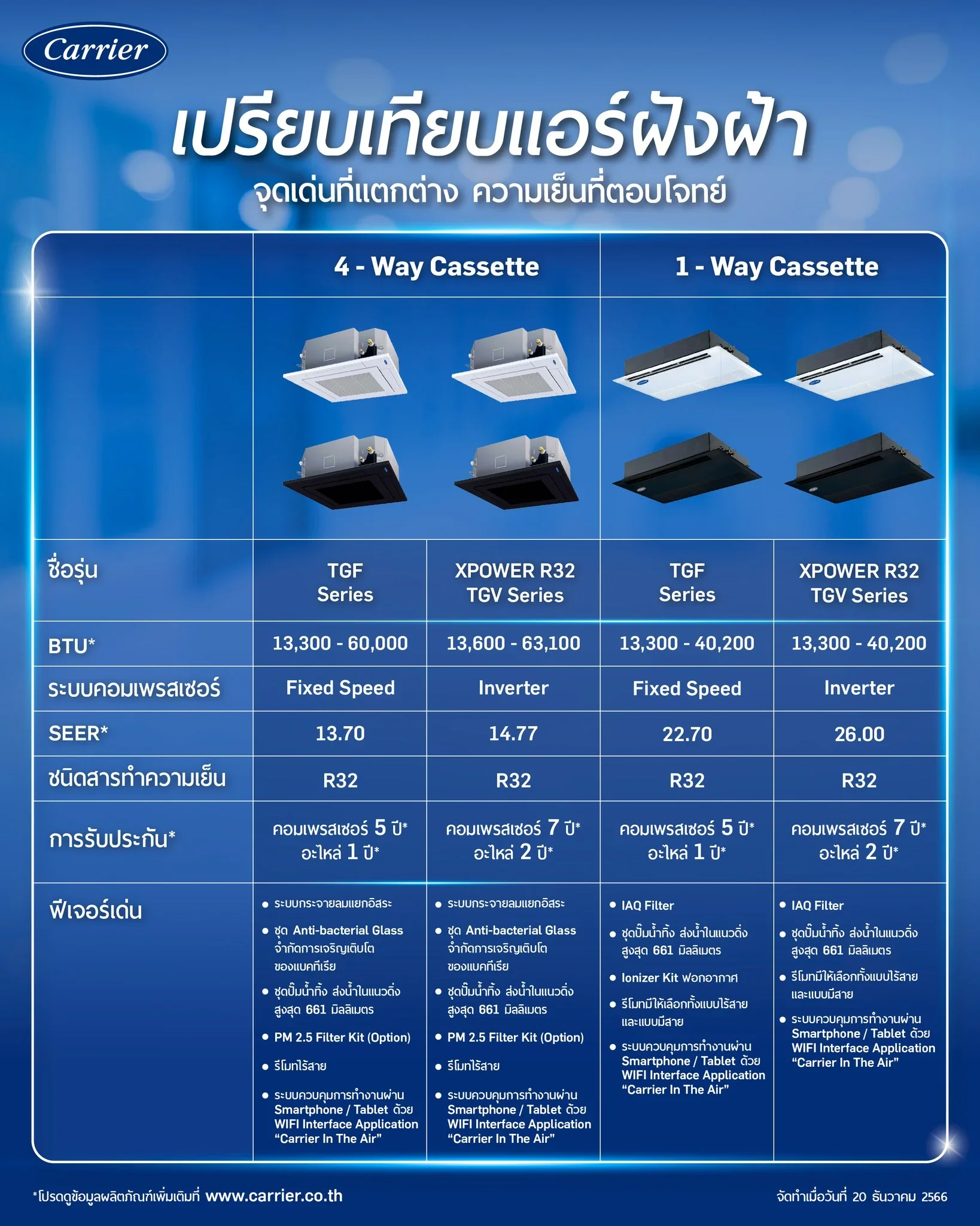 CARRIER ประกันอะไหล่ 1 ปี คอม 5 ปี | ฟรีค่าแรง 1 ปี